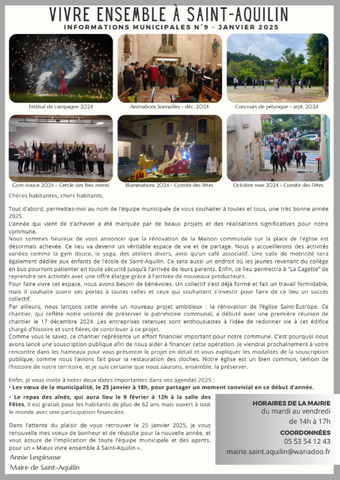 Contactez la directrice de l'école ou la mairie de Saint Aquilin.