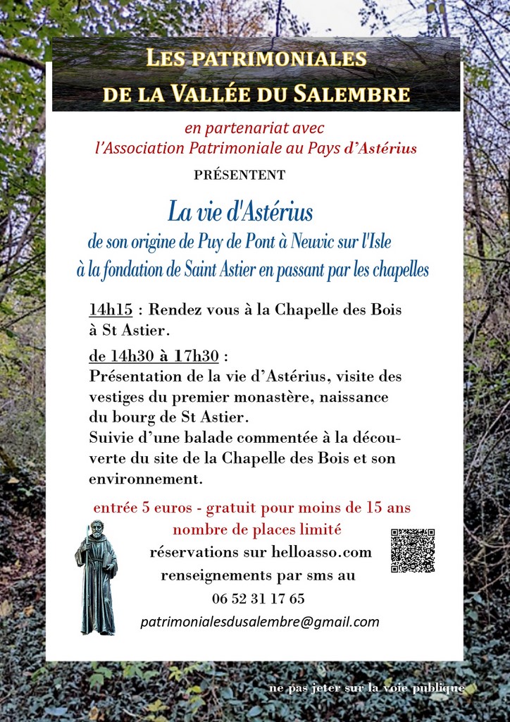 SAMEDI 22 AVRIL à 14h15 à la chapelle au bois à St Astier