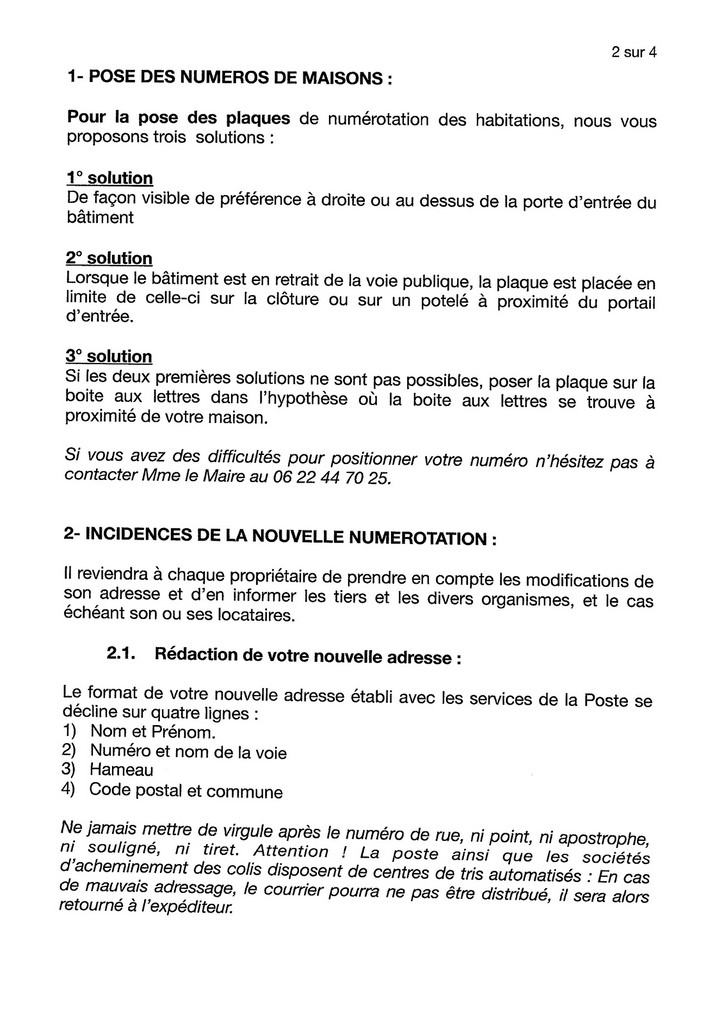Concernant l'adressage, la Poste signale que de nombreux habitants n'ont pas fait le changement d'adresse auprès des différents organismes. À partir du mois de juin les courriers qui ne porteront pas l'adresse complète ne seront plus distribués.