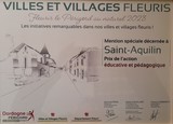 Le département "Villes et villages fleuris" a décerné une mention spéciale à notre village de Saint-Aquilin avec le prix de l'action éducative et pédagogique 2023.