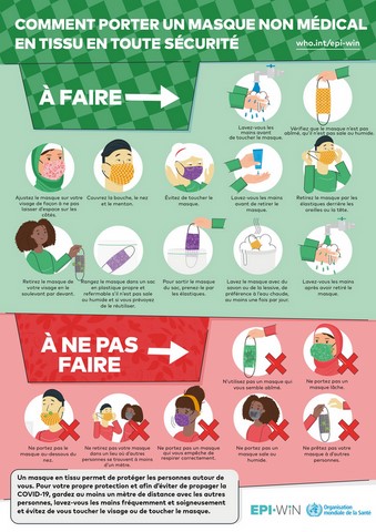 Dans un contexte de hausse des cas de contamination au COVID-19 pour les personnes de 11 ans et plus et selon certaines zones signalées le port du masque est obligatoire (centre ville, marché, magasins, transports...)