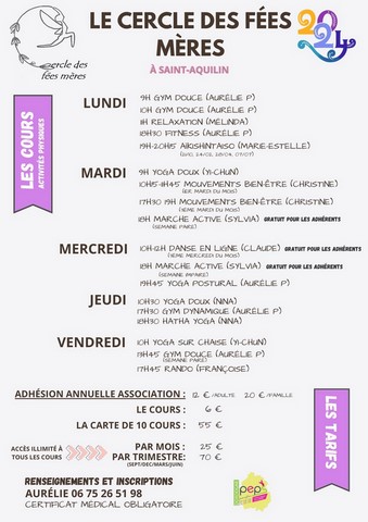 Le cercle des fées mères est une association qui a pour but d'inciter la pratique d'une activité physique comme outil de prévention de la santé, mais aussi de participer à des actions de solidarité, des campagnes éducatives pour la préservaion de l'environnement, de proposer des rencontres intergénérationnelles à travers différents ateliers.